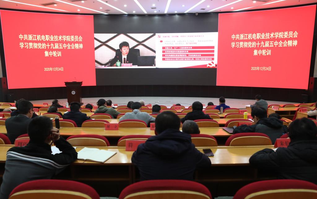 为深入学习贯彻党的十九届五中全会精神,全面系统领会习近平新时代中国特色社会主义思想,我校于12月23日-29日,组织开展学习贯彻党的十九届五中全会精神集中轮训,通过专题辅导、分组研讨、个人自学等形式,系统学习习近平总书记在党的十九届五中全会上的重要讲话、《中共中央关于制定国民经济和社会发展第十四个五年规划和二〇三五年远景目标的建议》及省委十四届八次全会精神。
