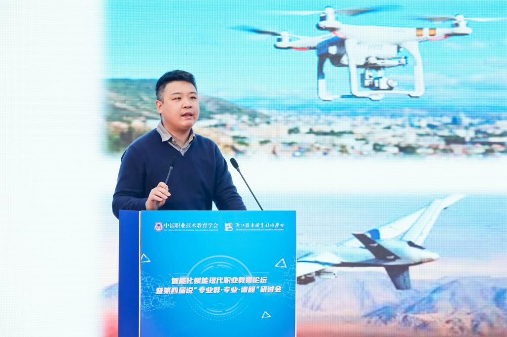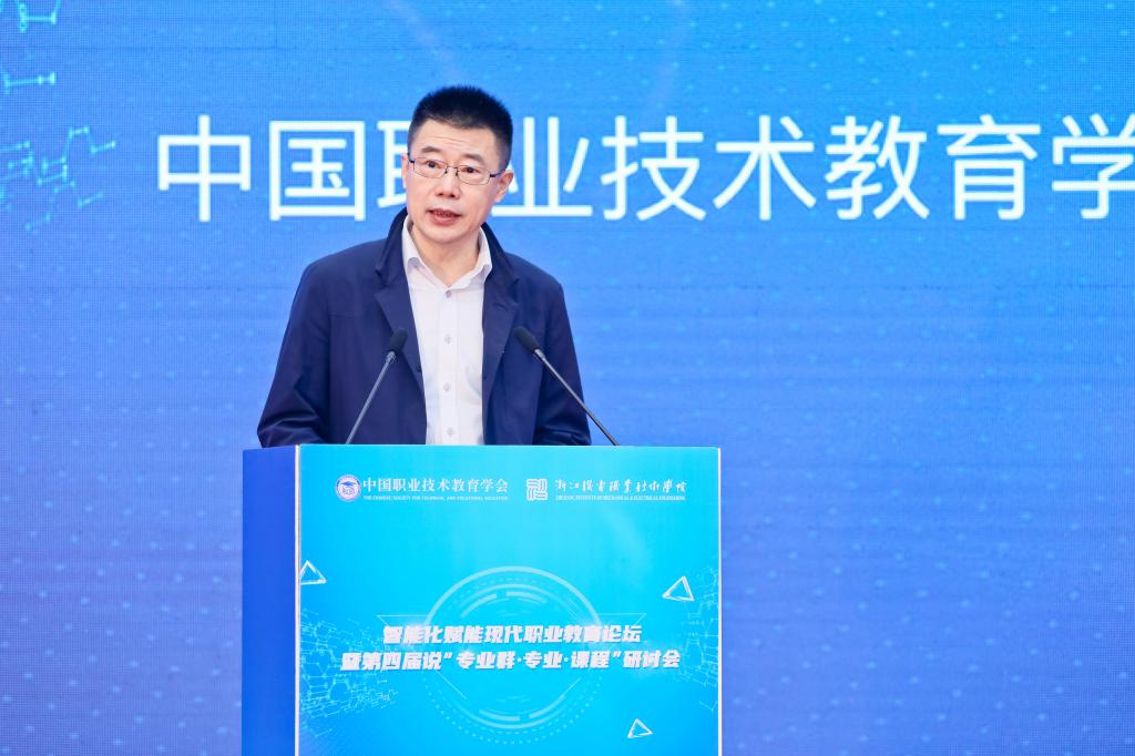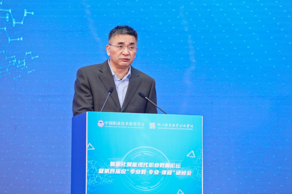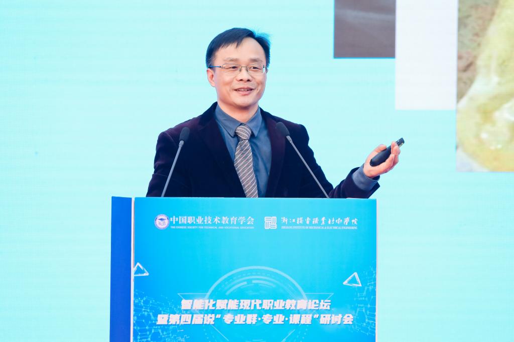 浙江机电职业技术学院院长贺星岳作题为《数字化赋能 助力职业教育提质培优——以浙江机电职业技术学院为例》的学术报告,从数字化赋能的时代背景、数字化赋能的实践创新、数字化赋能的未来方向等三个层面进行深入解读。