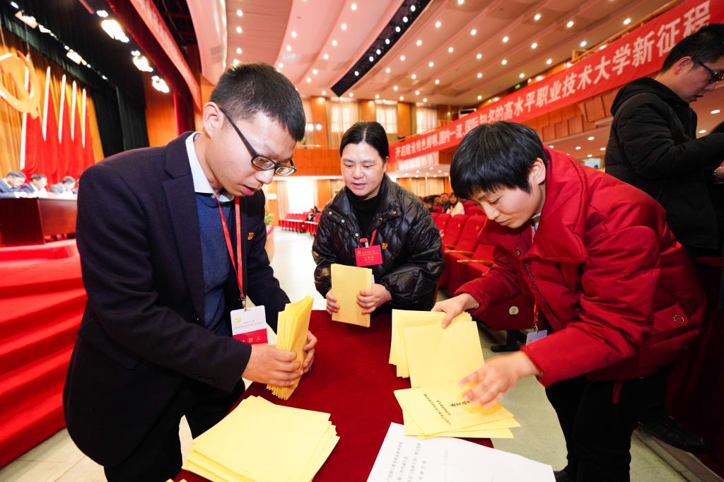 在经过各代表团讨论、审议两委报告及有关决议(草案)等后,16日下午,选举大会在滨江校区举行,省教育厅组织处副处长王委兴、省机电集团公司党委组织部副部长王子宝、党群部干部倪艳到会指导选举工作。