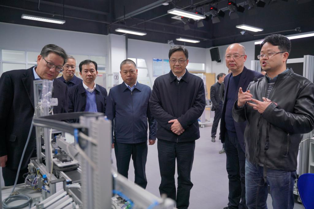 胡旭阳一行考察了我校焊接工业机器人实训室、智慧交通实训基地、智能制造实训基地、3D打印中心等地,听取相关情况介绍,详细了解学校发展情况。党委书记汤兆武汇报了学校党建思政、人才培养、师资队伍、专业建设、社会服务等方面建设情况。他指出,当前学校正在以“双高计划”建设院校的责任与担当,对标本科层次职业教育标准,优化顶层设计,践行新理念、打造新引擎、激发新动能,开启发展新征程。