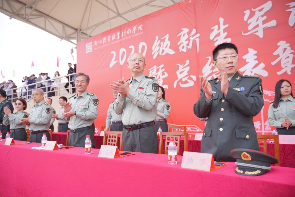 滨江区人武部部长钟孚指出,军训汇报表演各方阵次序井然、激情洋溢,展示了机电学院新生的优良素质。希望通过本次军训,同学们能学会知行合一,实干报国,奋力追逐新时代的强国梦强军梦,争做伟大时代的有志青年。