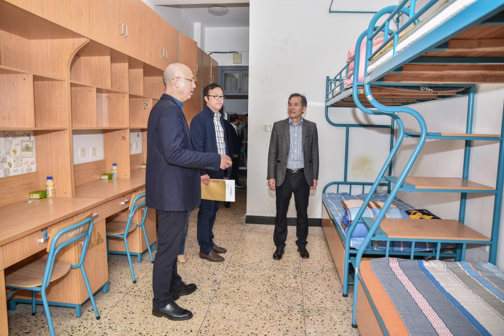 汤书记非常关心新生到校后的学习生活情况,强调要以学生为中心,做好后勤保障和服务工作,让学生满意。得知学生寝室存在渗漏水的情况,汤书记一行深入各学生寝室查看情况,现场处置。