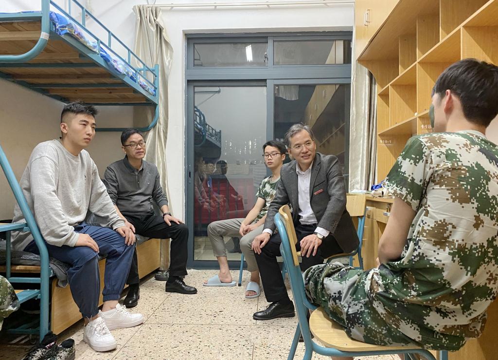 为深入调研我校2020级新生入学工作,衔接好即将到来的新生军训和新生始业教育,10月15日,长安校区新生报到后第二日,新生军训开营前夕,学校党委副书记周增逵深入学生公寓看望长安校区2020级新生,并对学生工作进行深入调研。