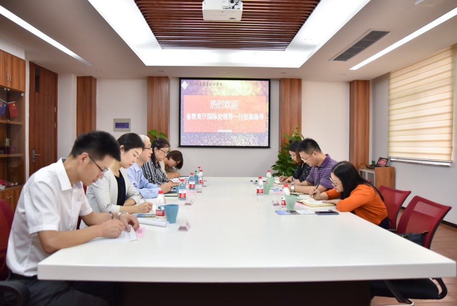 9月29日下午,省教育厅国际处处长汤书明、副处长蓝晶晶,省教育国际交流协会专职副秘书长程莉莉一行三人来我校调研省属高职院校国际化办学工作。校长贺星岳、校党委副书记周增逵及国际教育学院负责人陪同调研。