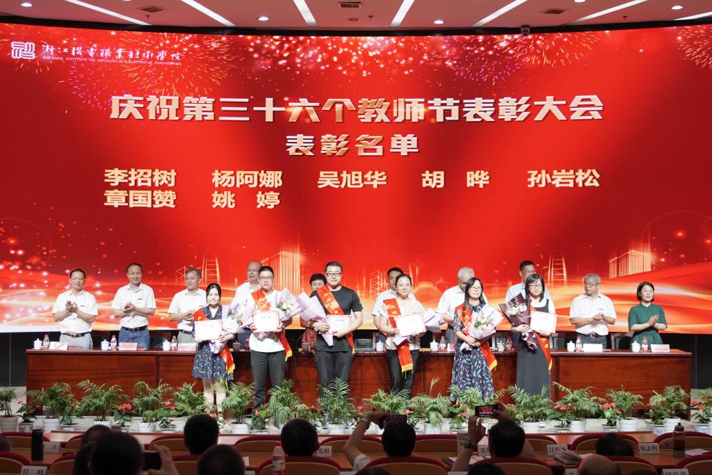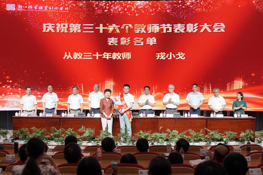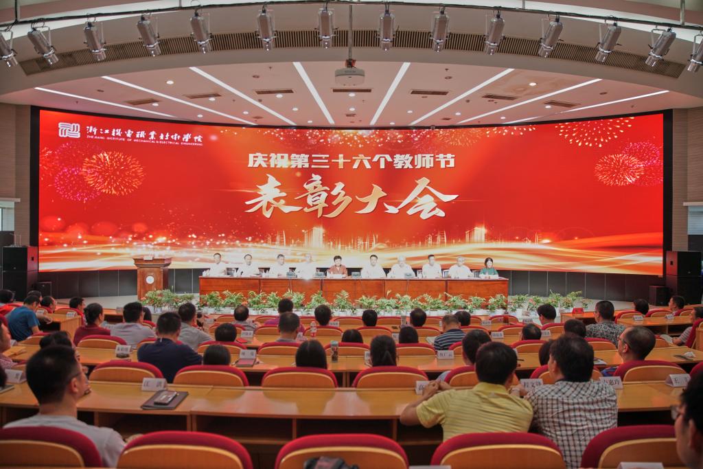 在全校以“三个地”的政治自觉,对标“重要窗口”的新目标、新定位,扎实推进“双高”建设,争创本科层次职业教育试点校之际,9月8日下午,我校在滨江校区召开庆祝第三十六个教师节表彰大会,表彰从教三十年教师和2019年度校级先进。省机电集团党委书记、董事长谢平,副总经理叶健松,学校领导班子成员,全体中层干部,教师、民主党派和学生代表,受表彰人员等参加。大会由校长贺星岳主持。