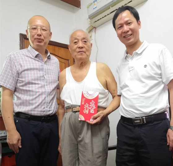 9月1日,在中国人民抗日战争暨世界反法西斯战争胜利75周年之际,学校党委书记汤兆武在离退休办负责人的陪同下专程走访慰问我校抗战离休干部姜连忠和温鹤亭。