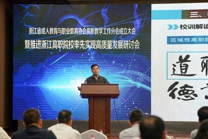 浙江省成人教育与职业教育协会副秘书长程晓建代表总会向此次高职教学工作分会成立表示热烈的祝贺,介绍了浙江省成人教育与职业教育协会相关建设情况。他提出高职教学工作分会作为高职教学工作的纽带和桥梁,要根据浙江省高职发展新政策、新背景,为浙江省高职教学工作做好服务工作,高质量贯彻各项工作,以更高站位,谱写浙江省高职发展新篇章。