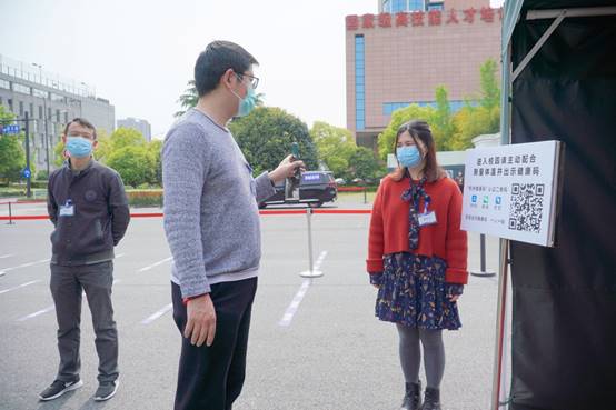 第二项演示内容:利用在线测温仪和手持式测温仪对进校师生进行管控