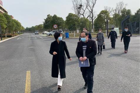3月11日下午,海宁市副市长沈勤丽,市教育局党委书记、局长张明翔,市卫健局党委书记、局长张海波、长安镇(高新区)党委委员姜迪等一行来到我院长安校区,实地调研疫情防控和复学准备工作。学院党委委员、副院长张耀,长安综合办主任陶勇,长安综合办副主任余涛等接待了沈勤丽副市长一行。