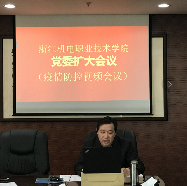 首先,学院疫情防控工作领导小组组长黄道平书记传达了省委省政府、省教育厅、省机电集团对疫情防控工作作出的最新指示精神。同时也传达了杭州市对新型冠状病毒感染的肺炎疫情防控工作的最新部署和要求。