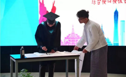 浙江机电职业技术学院副院长周纯江宣读缅甸毕业生名单,浙江机电职业技术学院院长丁金昌为缅甸留学生颁发浙江机电职业技术学院毕业生证书。毕业典礼的最后,缅甸留学生们为我们带来了精彩的表演。