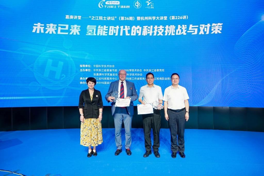 9月16日下午,嘉庚讲堂——“之江院士讲坛”第36期暨杭州科学大讲堂第226讲《未来已来—氢能时代的科技挑战与对策》在浙江机电职业技术大学联合启幕。中国科学院院士、南京大学教授、中国功能材料学会理事长邹志刚与德国科学技术研究院院士、牛津大学中国中心(亚洲与中东研究学院)教授Peter Sachsenmeier同台论道,围绕“氢能时代的科技挑战与对策”展开深度探讨,为浙江乃至全国的氢能产业发展提供前沿思考和创新思路。