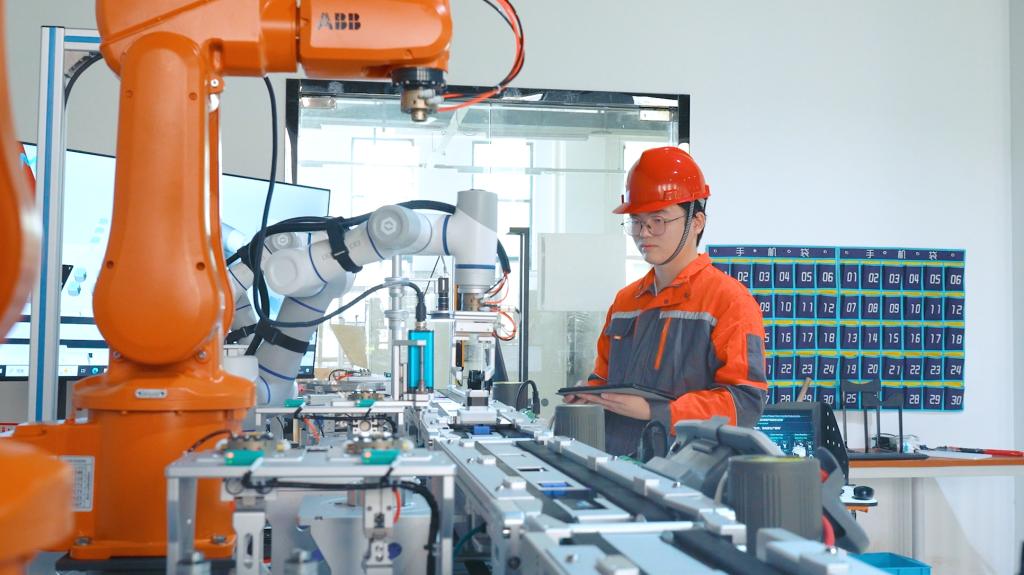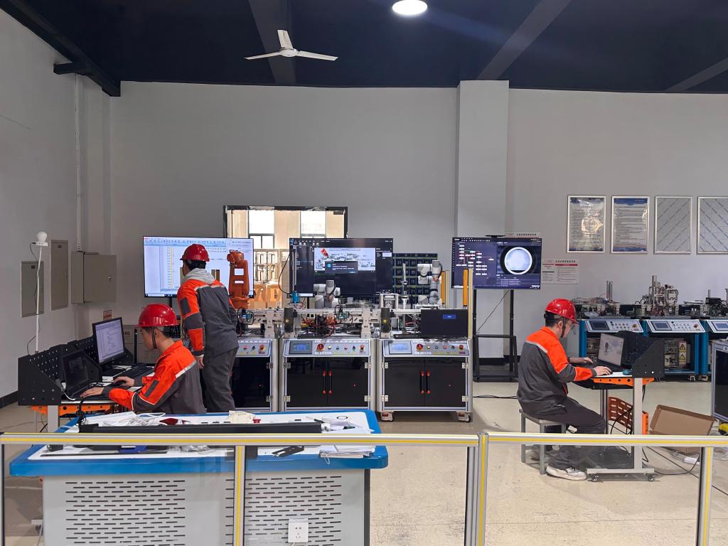 项目内容:面对联轴器、电机等产品在人工装配中存在的劳动强度大、扭力控制难、质检效率低等共性难题,项目团队融合先进制造技术,引入AI智能体、工业互联网与机器视觉等关键技术,构建了一套完整的智能化复合装配产线。该产线具备全流程智能监控能力,可将装配扭力值与精度误差稳定控制在±1%以内,并首次引入AI数字人技术,对关键工艺环节进行实时分析与决策支持,为生产数字化提供了示范引领。项目应用取得显著成效,人力成本降低约2/3,装配效率大幅提升,装配故障率下降50%,同时有效提升了学生在专业技能、职业素养和团队协作等方面的综合能力。项目涵盖三项应用创新:一是基于机器视觉与深度学习算法,实现装配连接件的自动检测,有效识别部件漏装,降低对人工质检依赖;二是融合工业物联网与数字孪生技术,构建生产过程数据的实时监控与可视化追溯系统,提升生产透明度与管理效率;三是采用机器人协同作业,并自主设计复合夹爪,替代原有人工装配,显著提高作业一致性与装配精度。
