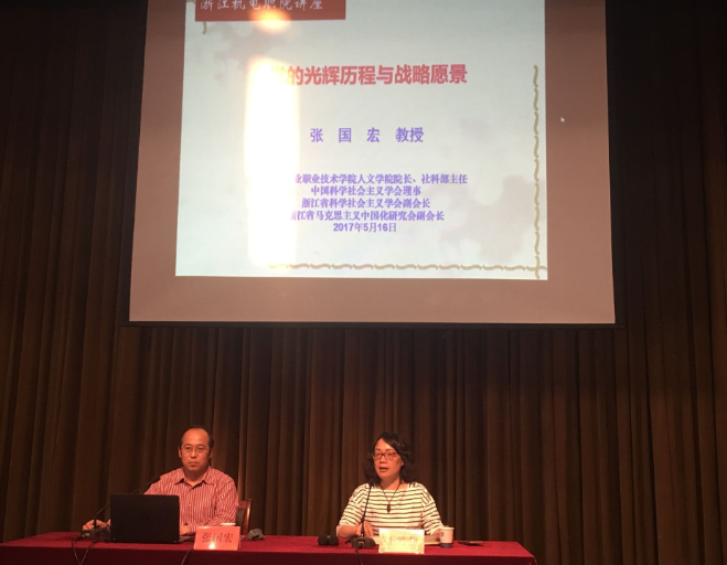 5月16日晚,“方圆大讲堂”系列讲座第三讲在滨江校区五号楼报告厅隆重开讲,本次讲座由宣传部、公共基础教学部主办,中国特色社会主义理论读书会承办。浙江商业职业技术学院人文学院院长、社科部主任张国宏教授受邀为我院师生作了一场题为“党的光辉历程与战略愿景”的精彩报告,报告会由公共基础教学部副主任王玲仙老师主持,机械系与电气系部分师生聆听了本次报告会。