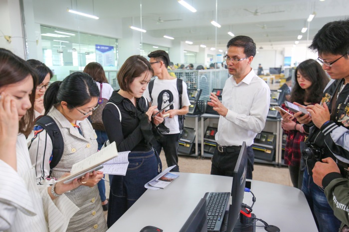 启动仪式结束之后,在院长丁金昌的带领下,采风团首次活动在我院开启。媒体记者在听取丁院长的对我院的介绍之后,重点参观我院工业4.0“浙江智造”公共实训基地,参观了精密智造技术中心、模具智造技术中心、智能控制技术中心、机器人应用技术中心、自动控制技术中心、智能电子产品技术中心、数字化车间等技术中心。在参观过程中,记者不时对正在授课的老师、正在实训的同学和丁院长提出问题,对我院现代化的职业教育水平进行了深入的了解。