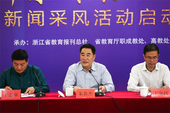 启动仪式由省教育厅副厅长朱鑫杰,省教育厅职成教处处长王志泉,省教育厅职成教处副处长高迎春,我院院长丁金昌,副院长王建林,院党委委员、院长助理丁明军,院党委委员王斌和媒体记者参加,王志泉处长主持。朱鑫杰副厅长在启动仪式上对各大媒体记者强调,要本着对职业教育高度重视的态度,发出浙江职业教育发展的好声音;要聚焦近期浙江教育的重点,找出职业教育的亮点;要面对职业教育师生的需求,讲好职业教育发展的故事;要紧紧围绕我省经济社会发展的需要,报道好浙江职业教育的新动向。