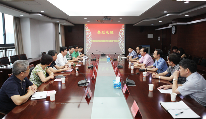 9月9日下午,在第32个教师节即将来临之际,滨江区政协主席沈孔良、区委常委、宣传部长卓超在区办公室、教育局、住建局等相关负责人的陪同下来到我院,代表区委、区政府亲切慰问我院广大教师,并致以节日的问候和美好的祝愿。我院党委书记黄道平、院长丁金昌等领导班子成员参加了接待与座谈。