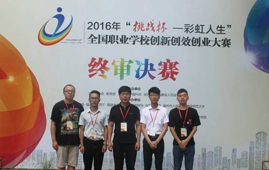在8月14日结束的2016年“挑战杯——彩虹人生”全国职业学校创新创效创业大赛中,我校两件作品分别斩获全国“特等奖”和全国“一等奖”。创下我校参加该项赛事以来的历史最佳记录,勇夺本次比赛全省高职院校最佳成绩。