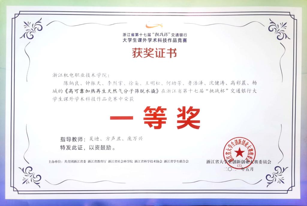 5月14日至16日,浙江省第十七届“挑战杯”大学生课外学术科技作品竞赛在浙江师范大学落下帷幕。本届大赛由团省委、省教育厅、省社科院、省科协、省学联主办,共有50所高校的323件作品入围主体赛省级决赛,我校学生项目与本科院校项目同台竞技勇夺一等奖。我校时隔10年重夺“大挑”一等奖,充分展示了我校学生科技创新教育的成果。