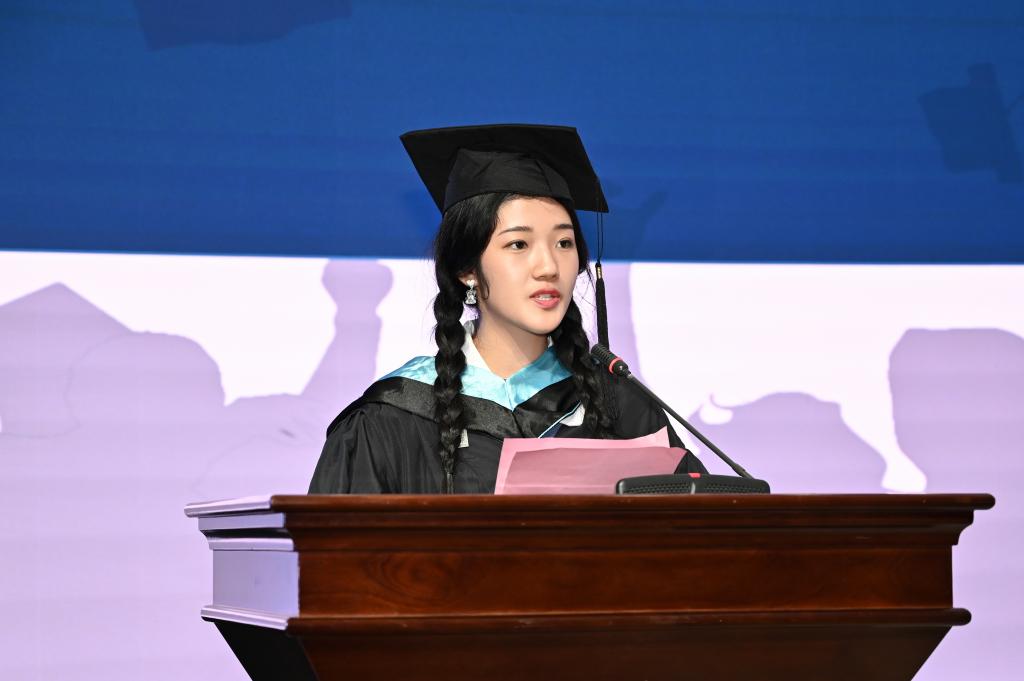 蔡金顺老师作为教师代表发言。他对毕业生顺利完成学业表示热烈的祝贺,对同学们今后的成功表示衷心的祝愿,并向毕业生提出了殷切期望。国贸1883班周灵蓉、物联1881班胡文乐、留学生昂勉恒作为毕业生代表进行发言,他们回顾了自己三年的成长,对学校及所有老师表达了诚挚的感谢,并激励同学们在以后的道路上继续拼搏努力,勇创佳绩,做一个对社会、国家有责任有担当的人。