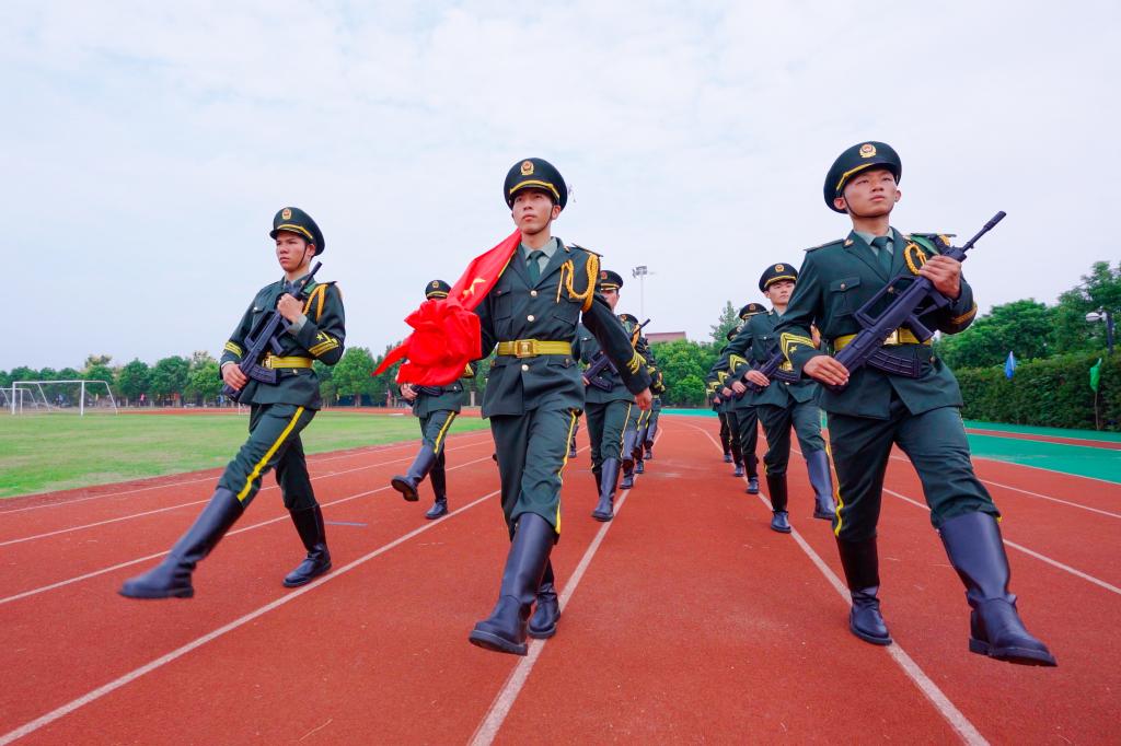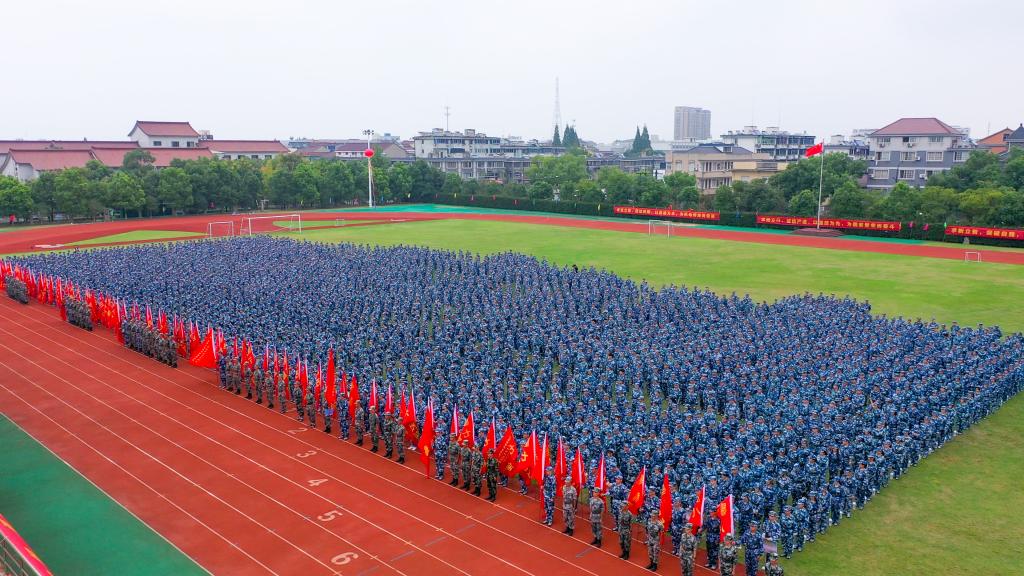 上午9时,3100余名新生戎装整齐、雄姿英发,在海宁校区田径场集结完毕。