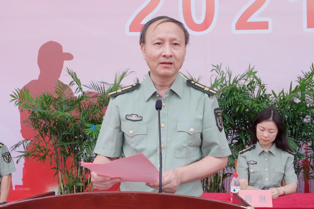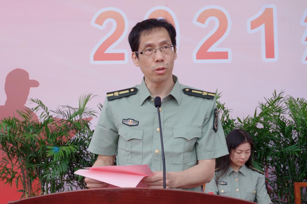 副校长周纯江宣读《关于成立2021级学生军训领导小组、军训团的通知》。