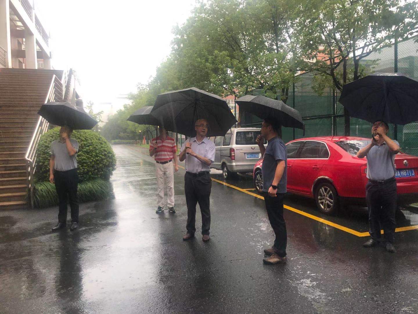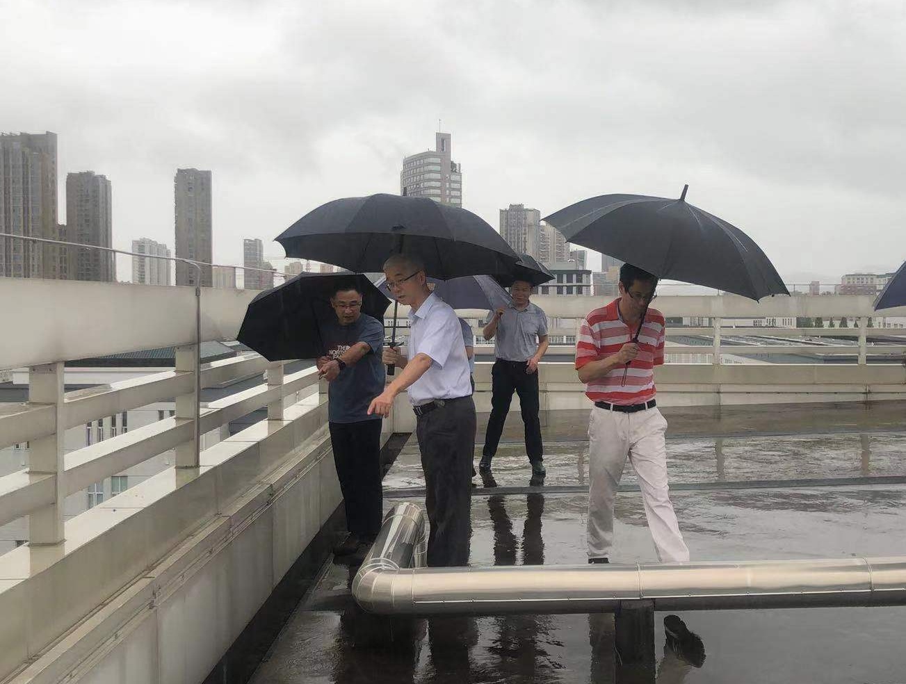 为进一步保障校园安全,全力做好14号超强台风应对工作。9月13日早上,校长贺星岳、副校长周纯江率院办、宣传统战部、保卫处、校园建设和后勤处等相关部门负责人对学校滨江校区校园整体尤其是重点区域的防汛防台工作进行全面检查。