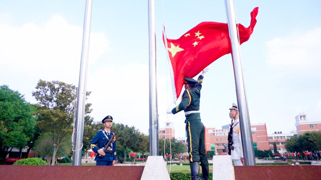 秋光澄澈,朝露盈盈。9月30日清早,我校在滨江校区中心广场举行国庆升国旗仪式暨“强国有我 请党放心”特别主题团日活动。学校相关职能部门负责人、百余名学生党员和青年团员代表出席本次活动。