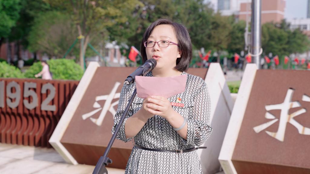随后,优秀青年代表、数字商贸学院李梦菲同学在国旗下演讲。她呼吁机电学子紧跟时代步伐,以学益智、以学修身、以学增才、以学报国。
