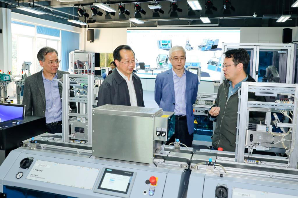 陈副总经理一行先后参观了学校工业机器人焊接技术中心、轨道交通实训基地、智能制造实训基地、智能控制技术实训基地、铸造3D打印实训基地和创意设计3D打印实训技术中心等,详细了解学校专业群建设、实训基地建设和运行、产教融合等情况。