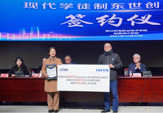 杭州东世科技有限公司选择与学校深入开展校企合作,开办“现代学徒制东世创新定向班”,共建产教融合实践平台,并捐赠价值500万Autodesk Alias教育版正版软件、价值100万元信息化教学硬件和15万元的人才培养费。