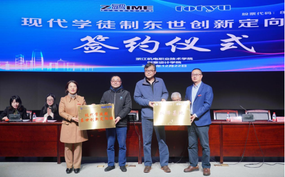 签约仪式由贺校长和陈磊董事长代表校企双方启动。贺校长在致辞中指出,校企合作是学校推进人才培养模式改革、服务地方经济建设的重要途径,是学校与企业实现合作共赢的重要举措和现实需要,有效促进了学校与企业在人才培养、生产实践、技术推广、社会服务等方面紧密结合,为学校走向社会、服务“浙江制造”、打造“机电”品牌、培养更多更优秀更受企业欢迎的高素质技术技能型人才提供了有力保障。学校创意设计学院立足“个性发展、多元推进”“艺术+技术”的创新人才培养,基于“创意设计与工程实现并重”的特色定位,围绕“产教融合机制、校企双向融合”的育人模式,为浙江省先进制造业转型升级、创新产业提供强有力的人才支持。