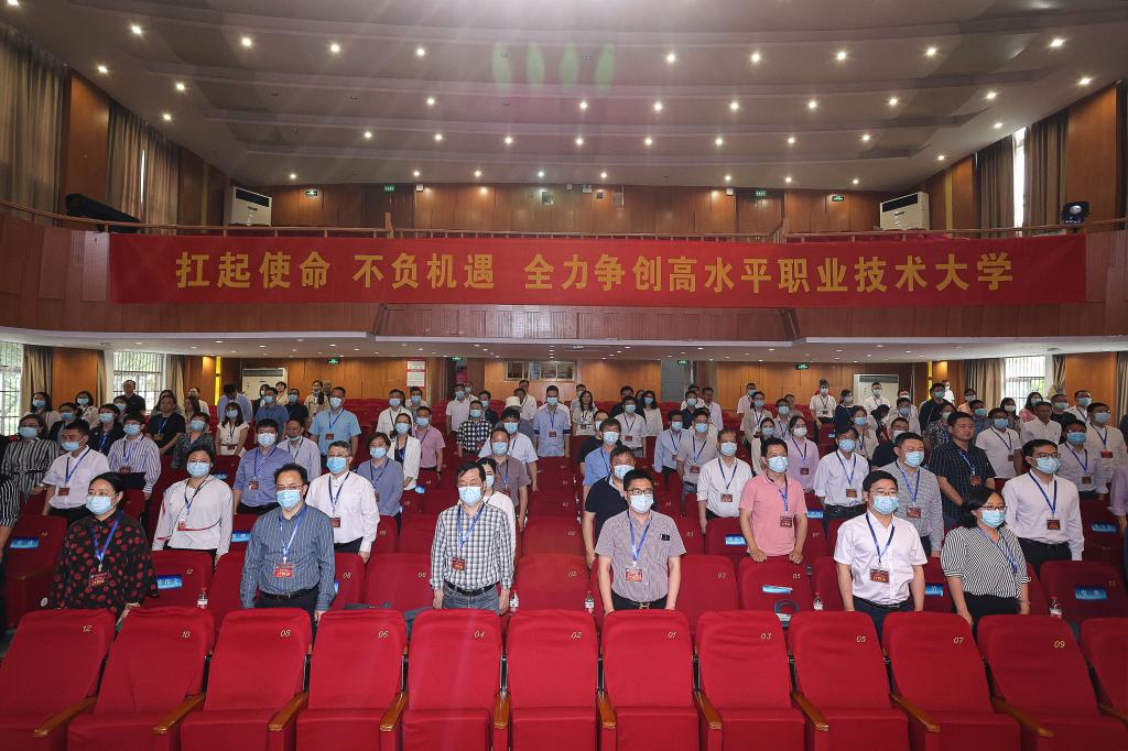 在第一次全体会议上,贺星岳作题为《扛起使命 不负机遇 全力争创高水平职业技术大学》的工作报告。王建林主持会议。