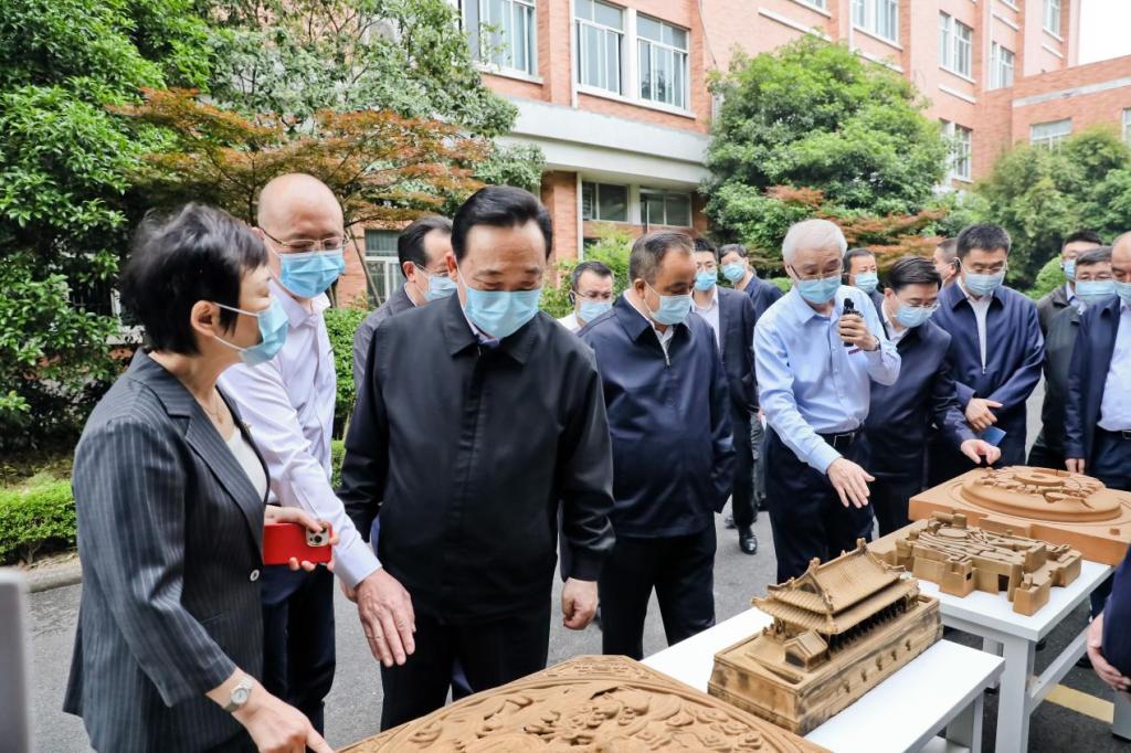 5月11日上午,新疆维吾尔自治区党委副书记、主席艾尔肯·吐尼亚孜率自治区党政代表团来浙江机电职业技术学院考察。浙江省委副书记、省长王浩陪同考察。浙江省机电集团党委书记、董事长谢平,党委委员、副总经理陈存法,校党委书记汤兆武,校长贺星岳等参加考察。