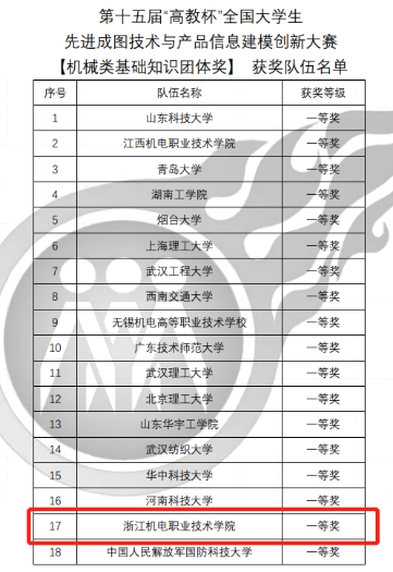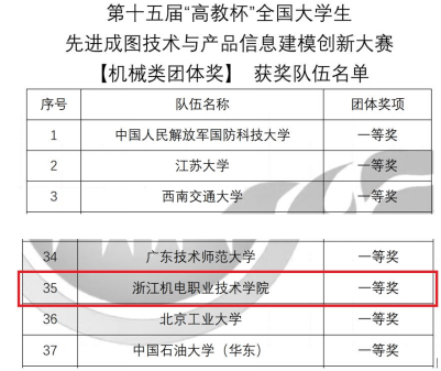 “高教杯”全国大学生先进成图技术与产品信息建模创新大赛(成图大赛)是由教育部高等学校工程图学课程教学指导委员会、中国图学学会制图技术专业委员会和中国图学学会产品信息建模专业委员会联合主办的图学类最高级别的国家级赛事,被誉为“图学界奥林匹克”,2018年被中国高等教育学会列入全国普通高校学科竞赛排行榜。大赛共分机械、建筑、水利和道桥四个类别,本届大赛共吸引了全国675所本科、高职高院校,1040支队伍,10344名学生参加,我校代表队与北京理工大学、解放军国防科技大学、华中科技大学等双一流本科院校代表队在同一赛道进行比赛,并按比赛成绩进行排名。我校学子依靠良好的专业素养和过硬的技术技能在比赛中表现出色,取得佳绩。