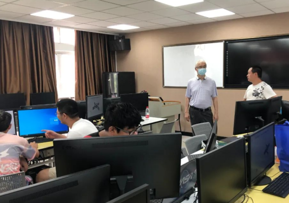 图2 校长贺星岳探望暑期备赛现场的参赛师生