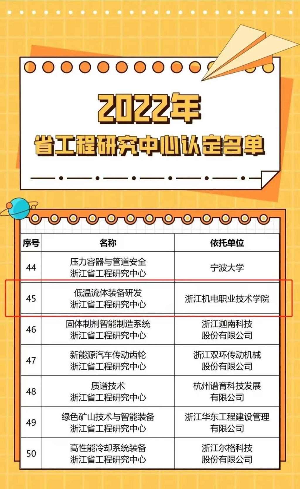 近日,浙江省发改委公布“2022年新一批省工程研究中心名单”,浙江机电职业技术学院申报的“低温流体装备研发浙江省工程研究中心”成功立项。该校为该项目今年全省高职院校唯一入选学校。