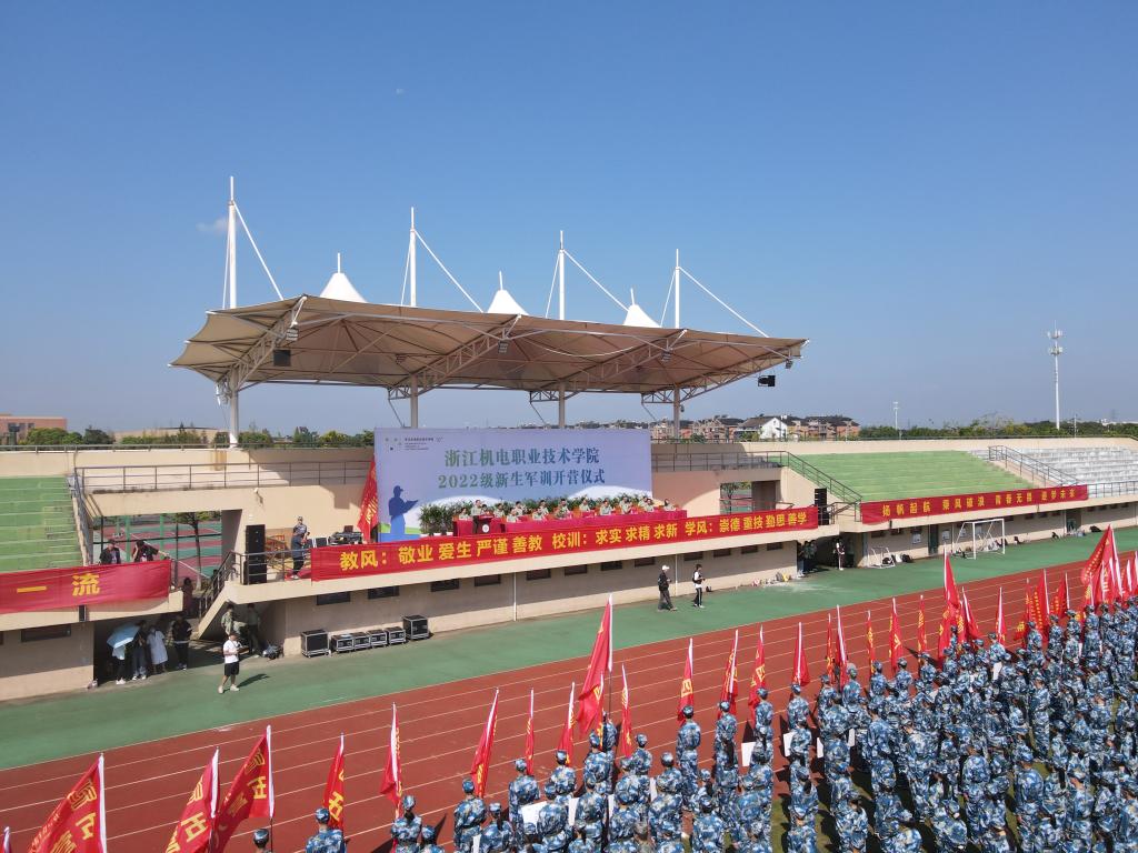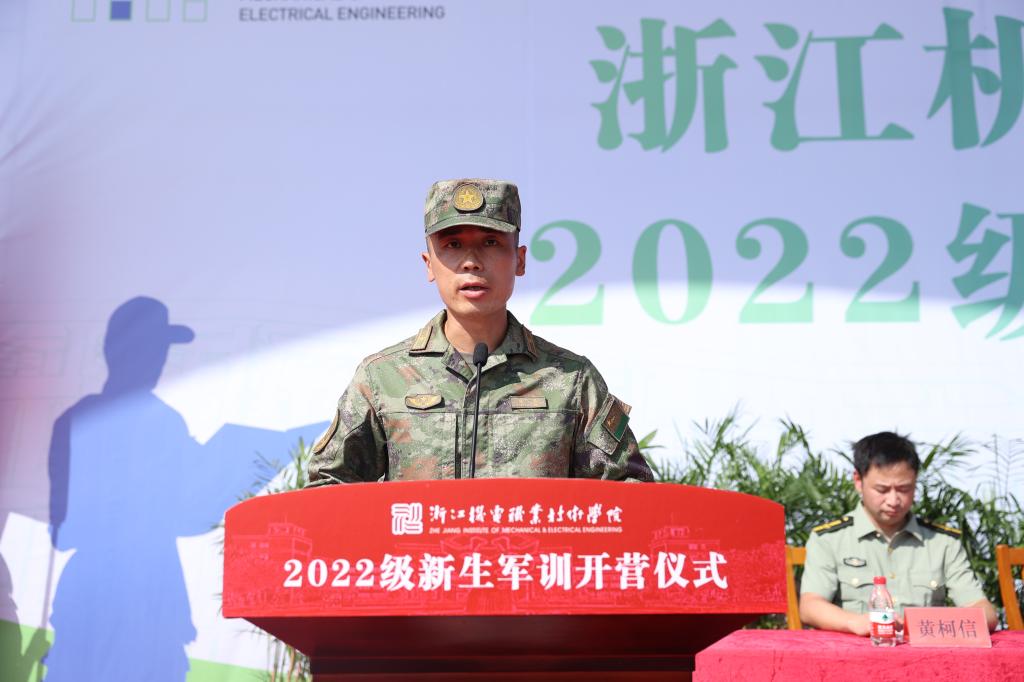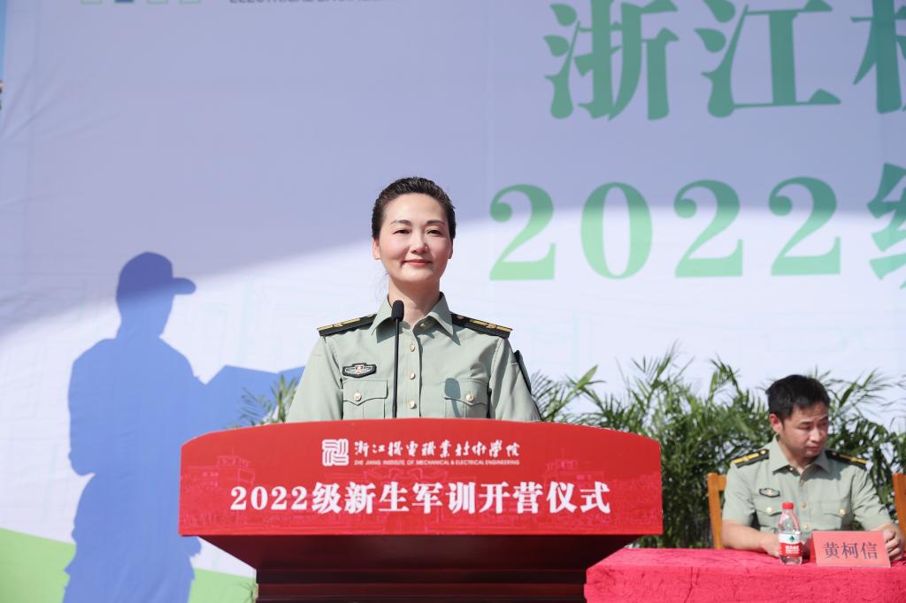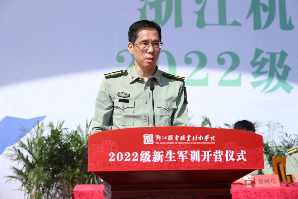 9月16日上午,浙江机电职业技术学院在海宁校区举行2022级新生军训开营仪式。党委副书记周增逵,副校长周纯江,军训团团长陈攀、军训团成员,相关职能部门和各分院负责人,辅导员、班主任及2022级新生参加开营仪式。