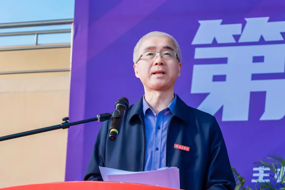 贺星岳在致辞中表示,党的二十大报告强调“体育”对于民族昌盛和国家富强的重要价值。今年恰逢学校建校70周年。70年来,学校一直延续着重视以“体”育人的优良传统,已初步构建了以课程教学、校园竞赛、运动队与社团建设、场馆与科研服务等为核心的校园体育生态圈,形成了良好的校园体育文化氛围。希望以本次运动会为契机,越来越多的师生融入体育运动中收获健康与快乐。同时,希望全体裁判员、工作人员恪尽职守,客观公正地履行职责;希望观赛师生能自觉遵守会场纪律,真正帮助和服务于运动员,共建和谐校园,展示出学校勇立潮头、奋勇前进的良好风采。
