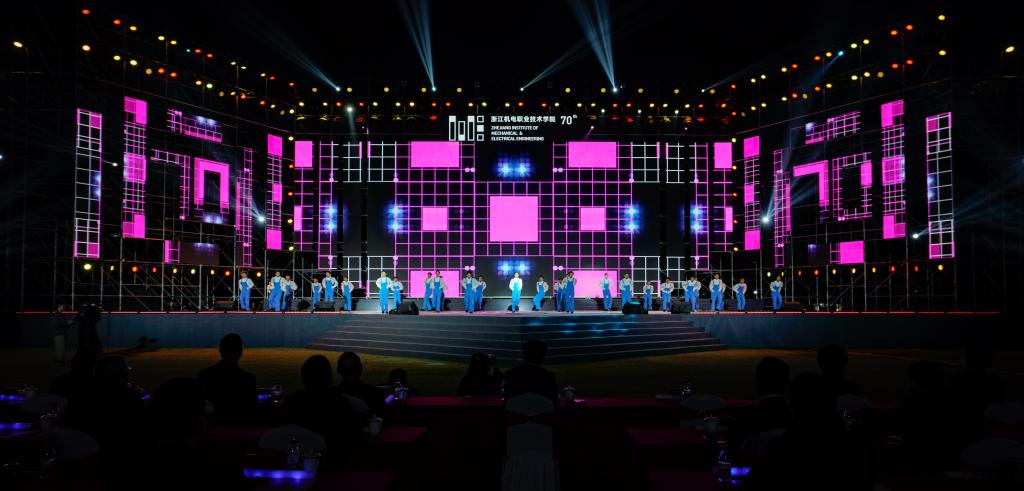 11月19日晚,“匠心筑梦·踔厉奋发”浙江机电职业技术学院建校70周年素质教育成果汇报演出在海宁校区举行。浙江省机电集团董事、总经理杨震宇,海宁市发改局、财政局、人社局、科技局、长安镇、高新区管委会等相关部门负责人,校党委书记汤兆武、校长贺星岳,校领导班子成员周增逵、丁明军、王斌、邓劲莲等,校友代表,校职能部门、二级学院相关负责人,教职工、在校生代表等在现场观看演出。演出还通过凤凰网、官方视频号、官方抖音等同步直播。