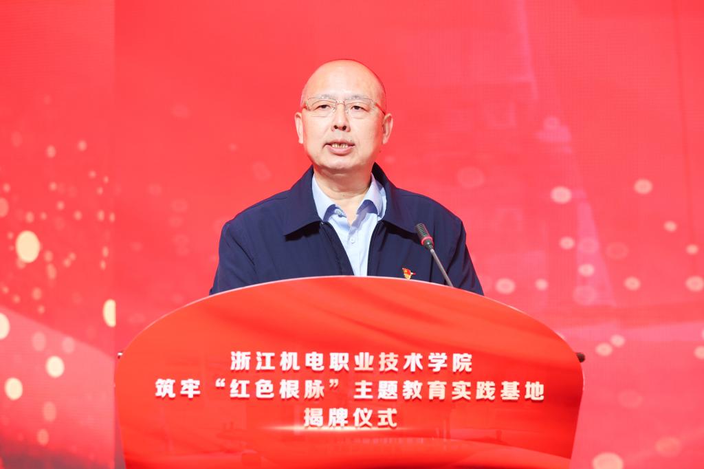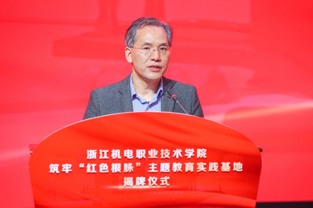陈先春在致辞中指出,在全国上下深入掀起党的二十大精神学习热潮之际,浙江机电职业技术学院筑牢“红色根脉”主题教育实践基地落成,充分展现新时代我省高校依托浙江红色资源、不断创新立德树人新成果;充分体现学校高度重视立德树人,坚持以习近平新时代中国特色社会主义思想铸魂育人的政治站位。