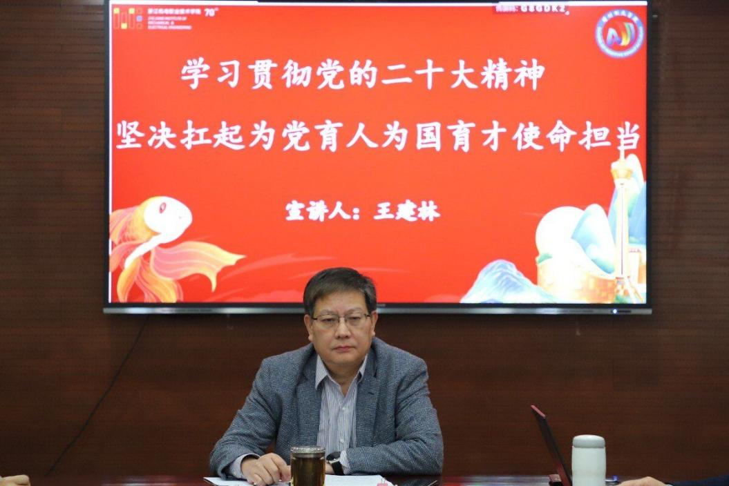 连日来,浙江机电职业技术学院党委书记汤兆武、校长贺星岳等校领导班子成员分别深入二级学院宣讲党的二十大精神,号召广大教职工发扬时不我待、只争朝夕的精神,以党的二十大精神为指引,在奋力推进“两个先行”新征程上踔厉奋发、砥砺前行,大力培养“知识融通、技术精良、国际视野”的紧缺型、复合型“浙派工匠”,朝着建设特色鲜明、国内一流、国际知名的高水平职业技术大学的发展目标不断奋进。