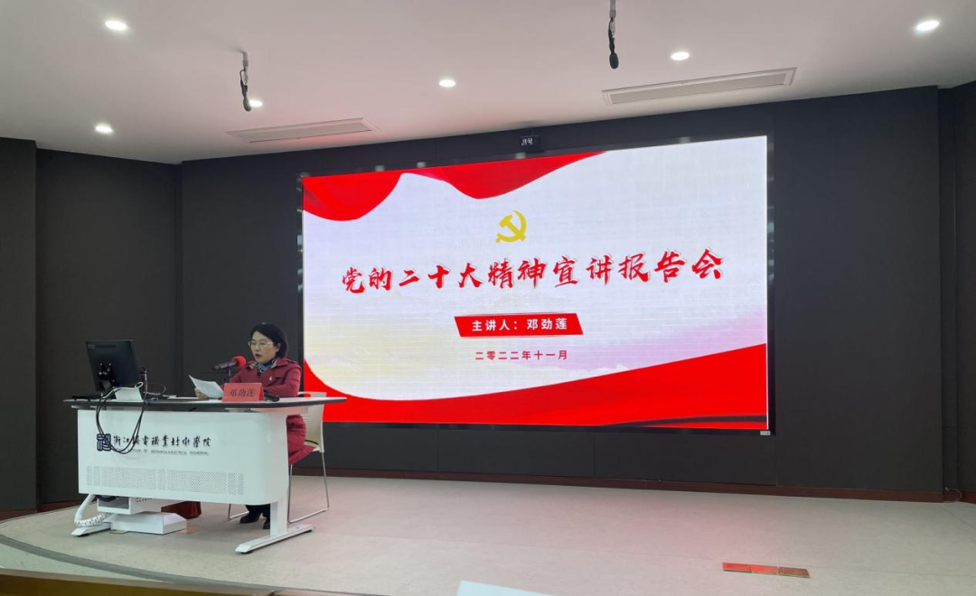 党委委员邓劲莲在创意设计学院宣讲。在创意设计学院,邓劲莲围绕深刻认识学习宣传贯彻党的二十大精神的重大意义、全面准确把握党的二十大精神、以党的二十大精神为引领扎实推进学校高质量发展等三个方面延伸开来。要求创意设计学院全面学习、全面把握、全面落实党的二十大精神,用党的新思想新理论武装头脑、指导实践,认真组织开展一系列学习实践活动,掀起广泛深入学习党的二十大精神热潮,全力打造“最美设计”学院品牌,推动学院全面发展和整体提升,为学校创建高水平职业技术大学做出应有的贡献。