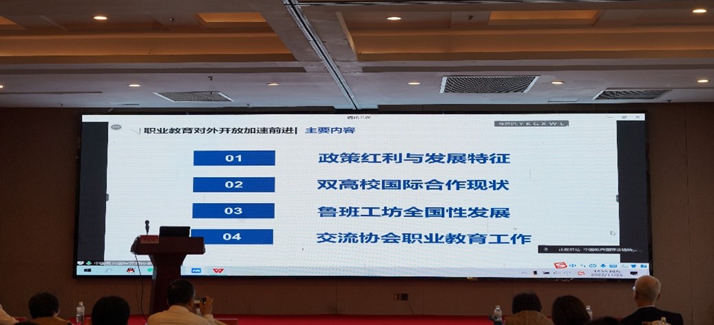 11月24至25号,由浙江省教育国际交流协会高职分会主办,浙江机电职业技术学院、温州职业技术学院、浙江纺织服装职业技术学院承办的浙江省教育国际交流协会高职分会2022年年会在宁波召开。中国教育国际交流协会副秘书长余有根,中国教育国际交流协会职业教育与培训部主任何培,浙江省教育厅总督学舒培冬,浙江省教育厅国际合作与交流处处长蓝晶晶,浙江省教育国际交流协会高职分会会长、浙江机电职业技术学院校长贺星岳及省内43所高职院校的领导和专家等100余人参加了会议。会议以线上线下相结合的形式召开,开幕式由浙江省教育国际交流协会副会长、宁波职业技术学院副院长岑咏主持。
