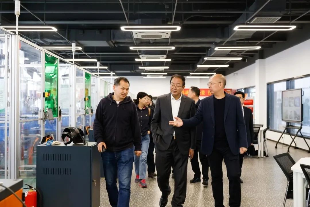 在工业机器人焊接技术应用中心,张世珍详细了解实训基地建设、管理、与运行情况。该中心包括工业机器人仿真技术实训室、工业机器人焊接工作站、工业机器人柔性智能焊接生产车间三大部分,集实践教学、技术服务、科技研发、培训考证及双创教育五大功能于一体,致力于建设成为引领全国的智能焊接产教融合基地和国内领先的智能焊接技术示范推广基地。