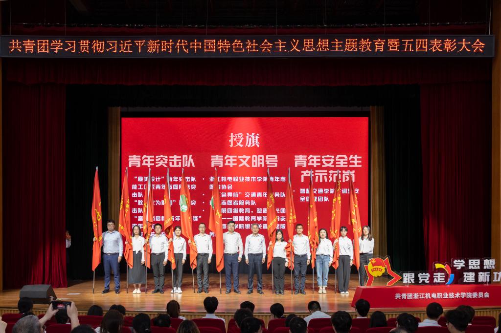 共青团学习贯彻习近平新时代中国特色社会主义思想主题教育暨五四表彰大会在团歌中落下帷幕。本次大会进一步激励和动员了全体机电青年师生从习近平新时代中国特色社会主义思想中汲取奋发进取的智慧力量,秉承工匠精神,彰显青春底色,在强国之路书写青春奋斗华章。