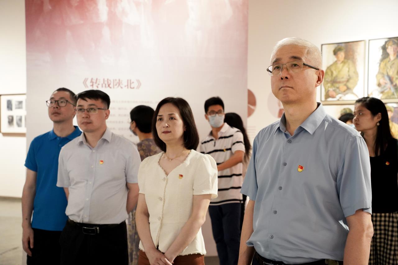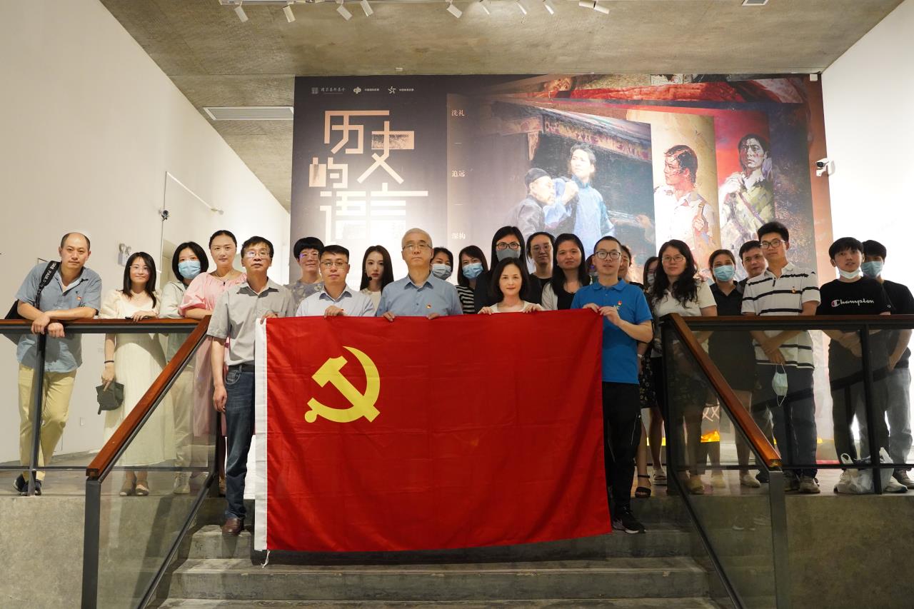 习近平总书记指出:“文艺是时代前进的号角,最能代表一个时代的风貌,最能引领一个时代的风气。”党的十八大以来,习近平总书记以高度的历史自觉和坚定的文化自信,对包括美术在内的文艺创作工作作出一系列重要论述,深刻回答了事关社会主义文艺事业发展的方向性、根本性、战略性重大问题。6月14日下午,国际教育学院党总支开展“循迹溯源学思想促践行”主题党日活动。全体党员赴滨江最葵园艺术中心,参观以“历史的语言”为主题的第五届中国油画双年展(杭州站),感悟艺术家们对重大历史主题的时代思考,以及艺术创作语言的历史演化。校长贺星岳以党员身份参加主题党日活动。