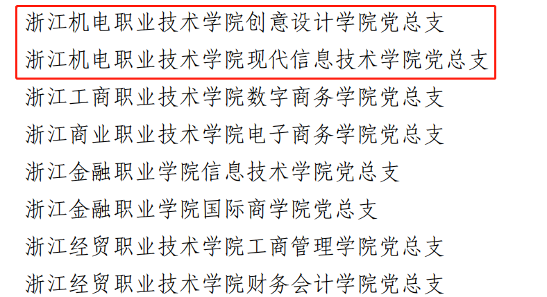 近日,中共浙江省委教育工作委员会公布了第三批全省高校党建“双创”培育创建单位名单,学校推荐选送的4个项目全部入选。其中,现代信息技术学院党总支、创意设计学院党总支立项第三批全省高校标杆院系培育创建单位,智能制造学院数控技术教研室党支部、国际教育学院国际贸易教研室党支部立项第三批全省高校样板支部培育创建单位。