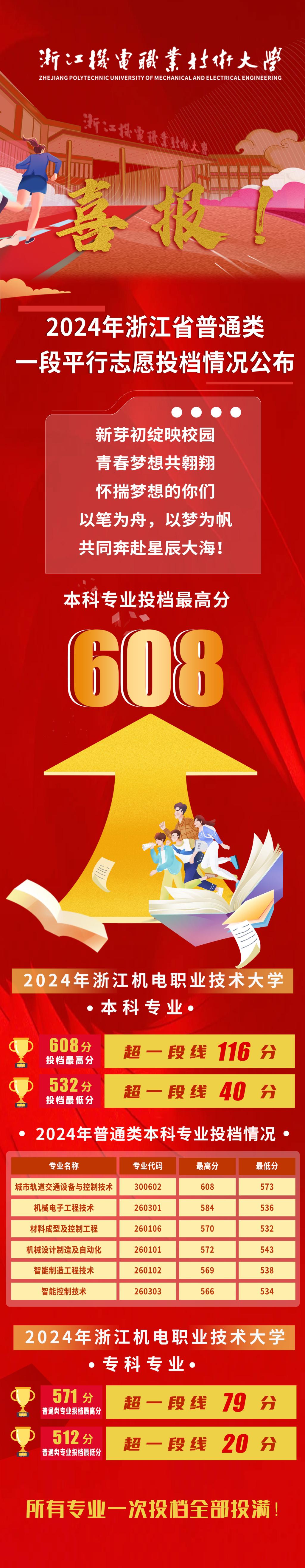 浙江机电职业技术大学2024年浙江省普通类一段平行志愿投档情况