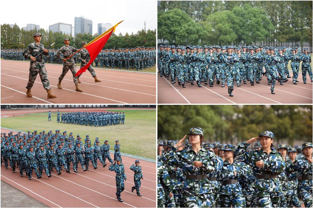 全体新生组成的方队口号嘹亮、气势如虹,步伐一致、整齐有力,以身作则践行着“求实、求精、求新”的校训。